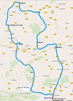 Les participants traverseront plusieurs sites patrimoniaux «où nous pourrons éventuellement faire une halte»: Vals, la Bastide de Lordat, Manses, précisent Gérard et Jean-Claude, rajoutant: «nous aurons parcouru quelques 90 bornes, selon le parcours ci-joint».
