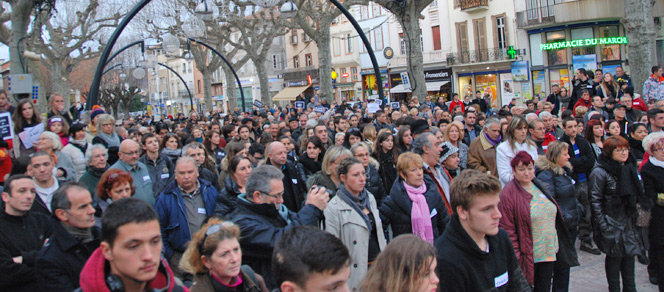 C’est en fin d’après midi qu’à eu lieu à Pamiers le rassemblement en soutien aux victimes de l’attentat du journal satirique Charlie Hebdo. Près d’un millier de personnes se sont retrouvées sur la place de la République, arborant pancartes et affiches «je suis Charlie»