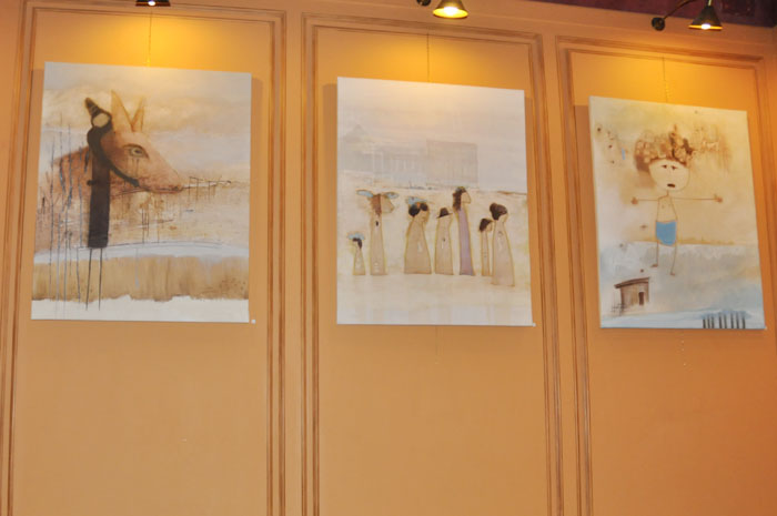 Tout d’abord, honneur aux dames, la peinture de Sophie Cohen-Scali et son univers poétique peuplé de personnages à peine figurés, attendrissants et profondément authentiques.