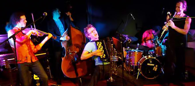Imaginez cinq musiciens talentueux (clarinette, violon, accordéon, contrebasse, batterie), avec parmi eux trois chanteurs timbrés, dont le plaisir d’être sur une scène est une évidence.