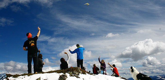 Après un premier passage assez haut dans le ciel, Jacques nous survole plusieurs fois en rase-motte, frôlant la montagne devant un public conquis. A la dernière rotation, il tire sa révérence et s’éloigne tel un gypaète barbu géant à la recherche d’un nouveau squelette à désosser…