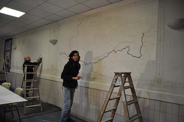 L’idée étant de réaliser une carte de l’Ariège en s’inspirant un peu des cartes Cassini de l’époque, représentant le département sur le chemin de St Jacques de Compostelle: «nous ferons intervenir une mosaïste et un ferronnier d’art pour donner un peu de relief à cette carte qui restera en place dans cette salle dédiée aux associations»