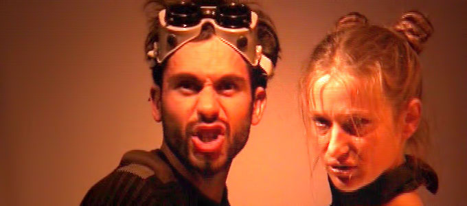 Dans un univers noir et blanc ponctué de touches colorées évoluent deux personnages de sexes opposés. L'horloge compte le temps, la radio hurle, les images cognent, les humains assassinent.