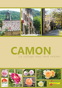 Un opuscule illustré de nombreuses photos, qui présente le village, son histoire, et 36 variétés de rosiers parmi la centaine de variétés différentes que l’on retrouve à Camon.