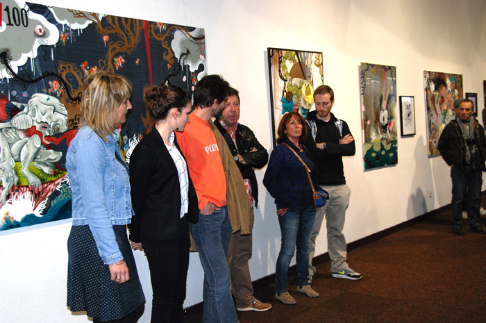 100 Taur alias Nicolas Giraud, peintre, sculpteur, illustrateur graveur. Sa peinture, de la BD, du graph, du dessin animé, de la couleur, de l'étrange, un autre monde qui peu déranger ou pas. Puis Fabien Bedel, inspiré lui aussi par la BD, sur toiles grand format où se mêlent multitude de personnages et scènes de la vie quotidienne ou imaginaires, certains plus improbables que d'autres, sur des textes choisis «la réalité est un fait, la réalité est un cauchemar»