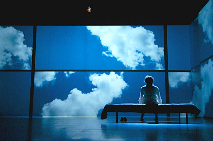 Dans la salle le spectateur est éblouis par une mise en scène magistrale et un rythme soutenu qui ne faillira pas durant tout le spectacle. Trois murs servant d’écrans, de portes coulissantes ou de murs de verre, donnent une dimension gigantesque à cet espace. Les scènes, courtes, sont ponctuées de noirs laissant apparaître dans une surprenante rapidité nouveaux objets et nouvelles situations.