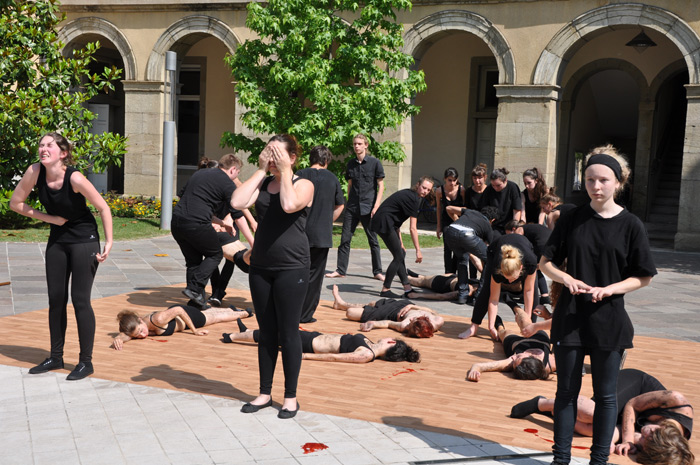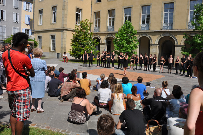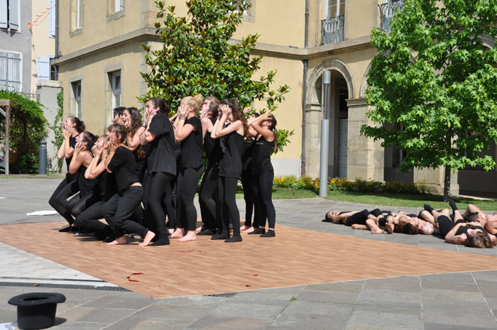 Vendredi, ils se sont produits sur le parvis de la mairie de Foix, un cri mêlé de colère et d’espoir mis en scène par ces jeunes supervisés par leur enseignante Clémentine. Le titre de la pièce est «10 crimes in nation….», lire «discriminations»