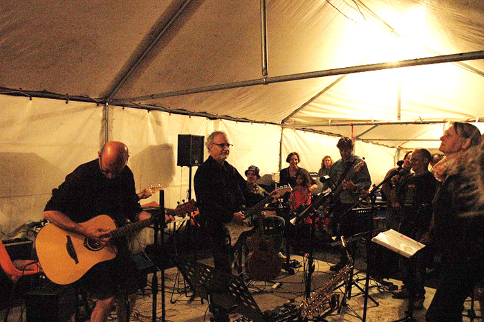 RASB, Hélène, les Clampins, et Véronique, tour à tour, ont créé l'ambiance, qui sous un porche, qui dans le jardin d'un villageois.