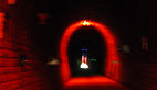 Le tunnel lieu de mémoire et fabrique d’imaginaireL’exposition de David Brunner comme la plupart de ses créations débute par un point de rencontre, ce sera ici dans le tunnel de Rimont «le wagon restaurant», une partie festive. Ensuite suivra un long couloir habillé de lumière rouge qu’il a appelé « la marche des cardinaux » menant au point cardinal sud: «c’est pour s’imprégner du tunnel, de son histoire, de l’ambiance par les vibrations ésotériques, magiques, surnaturelles qui font aussi partie de mon travail»