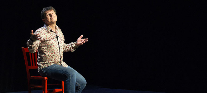 Accompagné d’une chaise, Yannick Jaulin a ouvert sa boite d’histoires pour le bonheur des plus grands. En effet ce conteur peu ordinaire ne s’adressait pas véritablement aux enfants.
