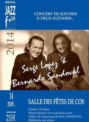 Avec le recul, Bernardo Sandoval n’est pas mécontent de ses choix: «je n’ai jamais trop réfléchi, j’ai fait de la musique comme ça venait, cela m’a donné du courage pour avancer. Mais je n’ai jamais oublié les racines du flamenco, cependant quand on apprend quelque chose il faut savoir le partager sinon cela ne sert à rien». Et le partage, la générosité il en fait preuve chaque fois qu’il monte su scène. Samedi dans le cadre de ce concert de soutien au Festival Jazz à Foix il sera accompagné par Serge Lopez.