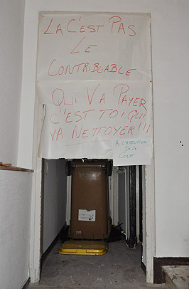 Pas d’erreur ni de hasard donc sur les destinataires de cette poubelle garnie. D’autant plus qu’une large banderole barrait le couloir d’accès au bureau d’un évocateur : «Là, c’est pas le contribuable qui va payer, c’est toi qui va nettoyer !», avec en post-scriptum «A l’attention de la Conf»