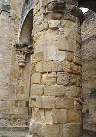 Les angles du chœur polygonal sont renforcés par six colonnes engagées formant les contreforts et reposant sur de hauts stylobats, cette formule n’est pas sans nous rappeler la basilique Saint-Sernin de Toulouse.
