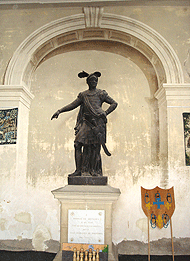 C’est sous l’impressionnante statue du célèbre Thomas Pons de Bruyères que nous reçoit Gilles Roméro, président de l’association «Les Chevaliers du Kercorb».
