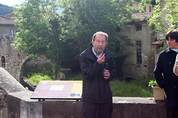 Il a suffi de parcourir quelques mètres pour rejoindre le panneau suivant qui se trouve au bout du pont en direction de Fontestorbes. Qui d’autre que l’historien Jean Cantelaube, chercheur associé du laboratoire Framespa, spécialiste de l’industrie, pouvait commenter ce panneau? Il a souligné que le patrimoine industriel est aussi important que le patrimoine religieux puisqu’il est le témoignage d’une histoire sociale, au plus près de la vie quotidienne.