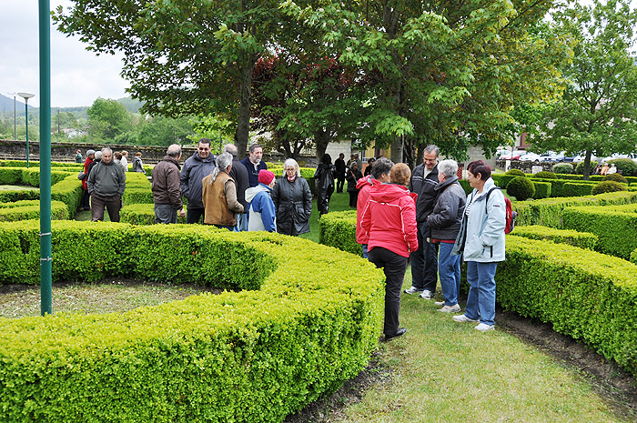 C'est en bordure de la route nationale dans le village de l'Aiguillon que Catherine Robin, animatrice du patrimoine, a accueilli les visiteurs, tous curieux de connaître l'histoire de ce jardin «extraordinaire» à l’emplacement improbable et aux contours mystérieux: l'ensemble des parterres sont délimités par des buis, des érables ou des tilleuls scandent les espaces, les massifs s'organisent en direction de petits bassins alimentés par des jets d'eau et bien que le concepteur ait cherché une certaine régularité, il n'y a pas vraiment de symétrie.