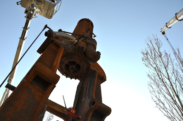 80 tonnes d’acier témoin de l’activité économique de PamiersC’est sous les conseils de Bernard que les techniciens de la Scop remontent la «bête», dans un étrange manège de grue à bras télescopique et de nacelle. Cet ancien ingénieur est rentré à l’usine en 1962 et pour lui l’installation de ce pilon a une signification particulière: