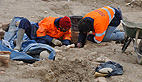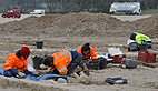 Entre pelleteuses et bulldozers, une poignée d’archéologues de l’Inrap (Institut National de Recherche Archéologiques Préventives) manient le pinceau et le scalpel pour exhumer des squelettes vieux de plusieurs centaines d’années.