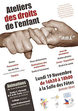 Avec le concours de la Maison des Droits de l'Enfant, de la Ligue des Droits de l'Homme et de la mairie de Saverdun, le Secours Populaire organise une série d'animations autour des droits de l'enfant du 13 au 22 novembre.