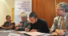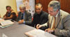 Samir Hachemi, 25 ans, a signé son contrat aux côtés d’Augustin Bonrepaux, président du Conseil général, Salvador Pérez, préfet de l’Ariège, Marc Carballido, conseiller régional PS, et Raymond Coumes, président de la mission locale de l'Ariège.