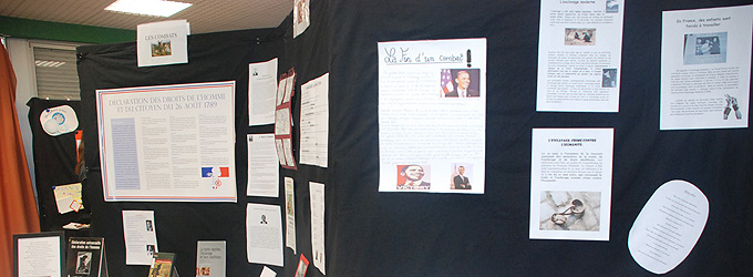 Des textes, des ouvrages et la déclaration des Droits de l’Homme et du Citoyen pour accueillir le visiteur à cette exposition initiée par les élèves de 4e du collège de Lézat-sur-Lèze.