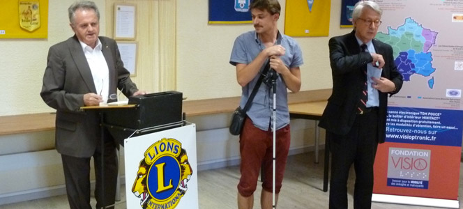 Sept Lions Club Ariégeois remettent une canne électronique à un jeune étudiant de Ganac