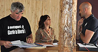 Dernière réunion de chantier à quelques jours de l’ouverture de la «Maison Lacube» aux Cabannes, une éco-maison du pastoralisme avec bar à vin, tapas fermières et un restaurant dont la carte sera élaborée à partir des produits issus de la ferme de l’éleveur ariégeois, la ferme du Quié.