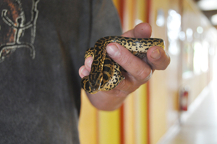 «La naissance d’un anaconda n’est pas commun car les anacondas jaunes peuvent faire jusqu’à 25 bébés en une portée, et les anacondas verts 60 à 80. On réfléchit avant de reproduire ce type de bête !»