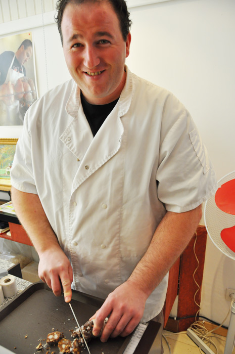 Sylvain avoue modestement qu’il s’est lancé grâce à son ami Vincent Gaychet (Les Délices à Jojo): «il m’a stimulé, lui vendait sur les marchés de Noël et les foires son millas, il m’a demandé de faire des chocolats… au début j’ai eu un peu de stress puis quand j’ai vu qu’en 2 heures je pouvais vendre plus de 600 chocolats et que les gens me suivaient d’une foire à l’autre, j’ai pris confiance en moi»