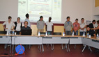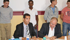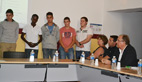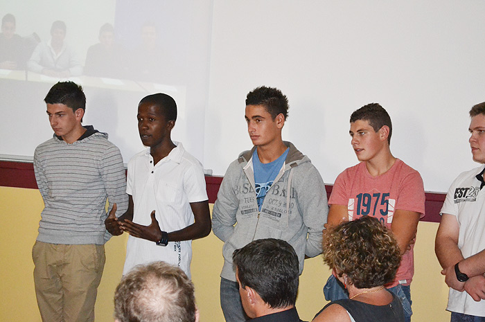 Autour de leurs professeurs, quelques-uns des élèves emmenés par leur jeune directeur Pedro Mbengui ont présenté leur entreprise, devant leurs pairs et sous les oreilles attentives de leur parrain Didier Rouaix à la tête de la Scop Construction du Couserans.