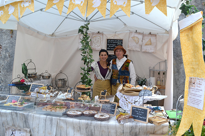 «Templier, Cathare, Amour courtois» sont quelques-uns des noms des produits sortis de ses fourneaux, «cuits au feu de bois» sur place pour les produits salés et préparés à l’avance pour les pâtisseries.