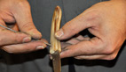 Valorisation du made in France et des productions ariégeoisesLes manches en bois ariégeois (six essences: chêne, noyer, buis, platane, prunier et frêne-olive), sont soigneusement sélectionnés et préparés par Luc Desmoyen, maître menuisier à Roquefort les Cascades puis ajustés en atelier. Des bois séchés sur place puis préparés, imbibés d'huile de lin pour offrir une meilleure tenue dans le temps. «Nous essayons de faire évoluer les modèles, standardiser les modèles pour se rapprocher le plus possible de la corne»