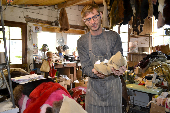 Et dans son petit atelier «Le Mouton des Pyrénées» dans le bucolique village de La Bastide du Salat, juste avant la Haute-Garonne, on s’y perdrait vite entre les amas de peaux et diverses pièces pendus et entreposés.
