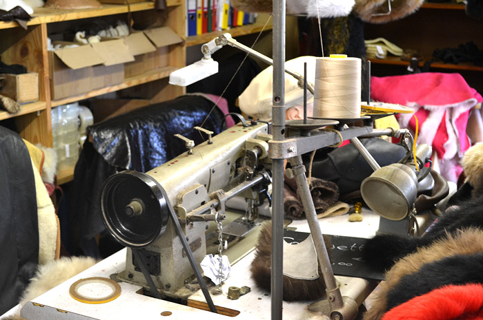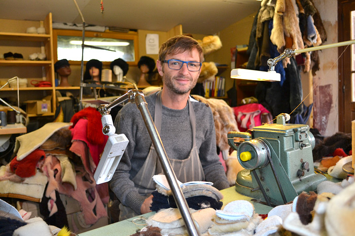 La spécialité de l’atelier: «le travail de la peau de mouton et d’agneau, la peau lainée, à partir desquelles je fabrique des toques, des casquettes, des chapkas, des semelles, des moufles et bien sûr l’indémodable chausson en laine»