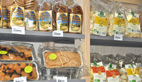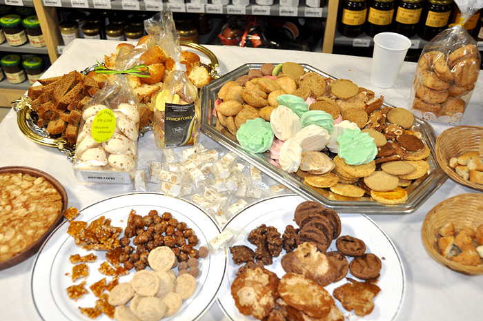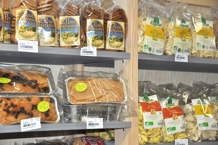 Pruneaux d’Agen, blanquette de Limoux, charcuteries de Jacques Poux à Belcaire, Hypocras, anchois de Collioure, confitures, miels et foie gras ariégeois, un important choix de vins mais également une place significative faite au commerce équitable et aux produits frais: laitages, fromages ariégeois à la coupe, fruits et légumes.