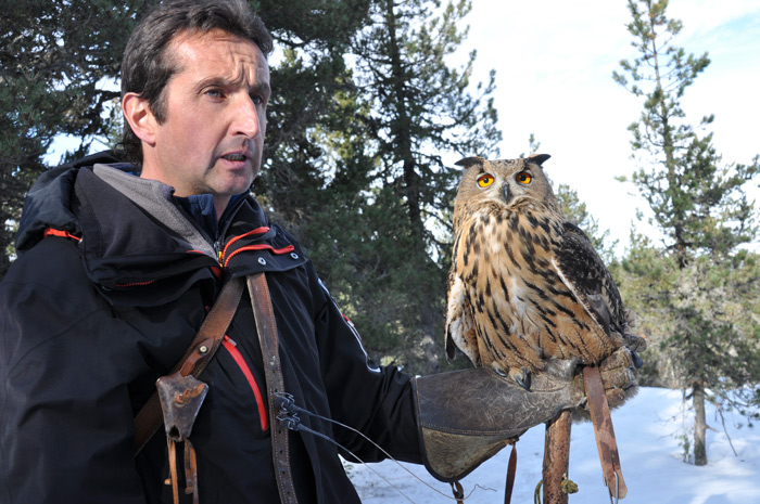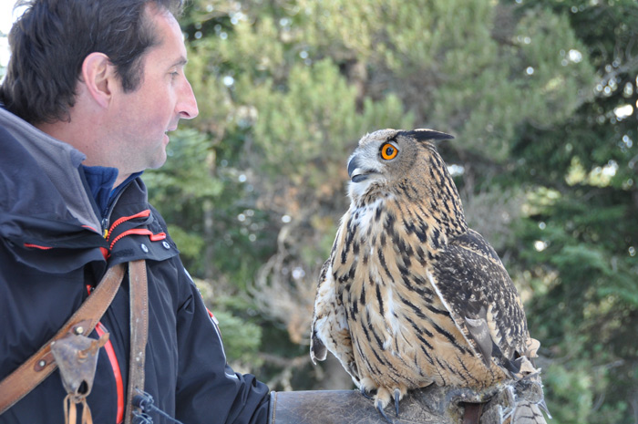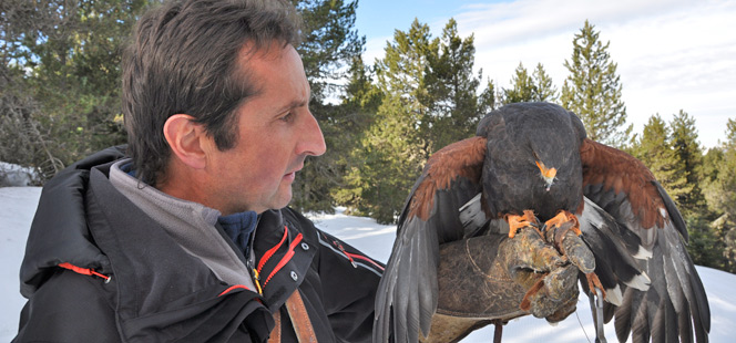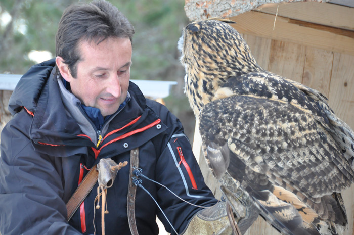 Entre les pins à crochets, dans un théâtre naturel à couper le souffle, cet ancien fauconnier de l’armée de l’Air passionné par les oiseaux nous invite à partager sa passion des rapaces.