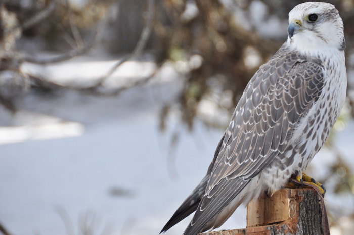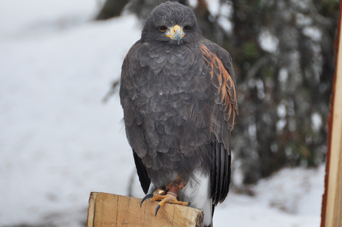 Non loin de lui trois buses de Harris pattes en plume, ébouriffées pour garder la chaleur attendent patiemment les visiteurs sur leurs perchoirs. Parmi elles, Cid est parfaitement acclimaté, il «parle» en permanence et quand on le tient au gant, il est même capable de signes d’affection: «Il nettoie tous les jours ses 6000 plumes, des plumes qui lui permettent de supporter les températures extrêmes, entre +50 et -50 degrés»