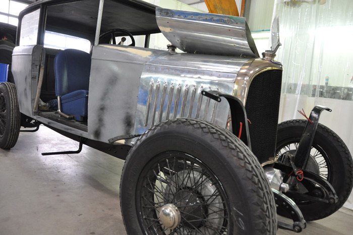 C’est pour Manu Avalo, spécialiste en carrosserie, un véritable challenge que de restaurer cette Voisin de 1927, un véhicule qui a la particularité, comme beaucoup à cette époque, d’avoir une armature en bois de frêne sur laquelle on a clouté la partie métallique: