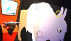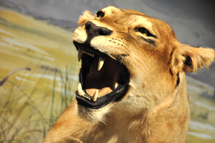 «Au-delà du visuel de l’animal, une fiche d’identité indique les interactions qu’il peut y avoir avec l’homme: il le chasse, utilise ses bois, ses os… et comment il le représente. Ici une représentation de mégacéros de la grotte de Cougnac dans le Lot, pour le lion des cavernes le lissoir de la grotte de la Vache (une grotte ariégeoise située en face celle de Niaux). Et pour comprendre l’animal dans sa globalité, il est représenté ici en position d’attaque dans son paysage de steppe.