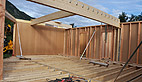 La construction de cette maison bois a débuté il ya quinze jours en atelier où les murs et les huisseries ont été fabriqués et depuis lundi deux artisans ont commencé la pose des différents éléments: «d’ici fin octobre elle sera hors d’air et hors d’eau, les menuiseries seront en place, le bardage extérieur, la toiture et sa couverture… tout l’extérieur sera terminé, il ne restera que les aménagements intérieurs»