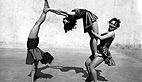 «Les adultes masculins forment un groupe de main à main, «les Frédélas» (nom historique de notre ville). Alors inspirées par eux et encouragées par mon père, Simone Anouilh, Simone Déjean et moi, nous créons notre trio de main à main féminin avec porters agrémentés de déplacements rythmiques.