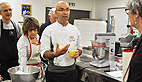 Les groupes s’organisent, Patrick donne les directives avant de lancer les différents ateliers, du chocolat aux macarons, l’objectif étant qu’en trois heures de temps, les apprentis restituent leurs productions.