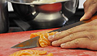 Elle requiert non seulement une attention extrême portée au produit (thon, saumon ou bar, mais c’est beaucoup plus cher): «n’hésitez pas à envelopper votre poisson dans du papier absorbant et à la changer régulièrement vous pourrez le conserver plus longtemps en toute sécurité», mais aussi au maniement de l’instrument de découpe, un couteau triangulaire parfaitement aiguisé qui doit suivre dans un mouvement souple et précis toute la superficie du filet à trancher.
