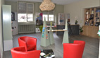 Dans un style épuré, contemporain, rehaussé par les clins d’œil au territoire et un mobilier en bois, c’est une ambiance intime que procure les différents espaces aménagés au sein de ce local de près de 100m². Espace de repos avec ces profonds fauteuils et son petit coin salon, espace avec tablettes numériques et accès WIFI, espace enfants, tout est fait pour que le visiteur se sente instantanément chez soi.