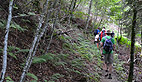 Le chemin se rétrécit, la côte devient plus raide et s’enfonce dans la forêt, âne et randonneur s’aident mutuellement pour franchir l’obstacle sous les conseils du guide. Bientôt Kadosa et sa tribu disparaissent au détour du sentier entre les arbres. Le chemin est encore long avant le bivouac du soir.