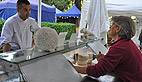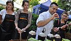 Dès 10 h du matin les candidates ont retrouvé le Masterchef au départ du marché des producteurs dans le parc du Casino. Et c’est guidé par Florian Laffite, médaille de bronze des meilleurs apprentis de la Région Midi-Pyrénées, que pendant près de deux heures le petit groupe a goûté et sélectionné les produits: «je n’ai pas encore d’idée précise du menu, mais je vais choisir des produits typiquement ariégeois que je vais essayer de mettre à l’honneur, en tout cas de les respecter» précise Marc très attentif à ses rencontres sur le marché: «cela me permet aussi de découvrir des saveurs qui me donnent des idées de recettes pour plus tard»