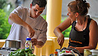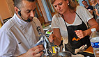 C’est ensuite sur le marché de plein vent sur la place de la mairie que le petit groupe s’est dirigé, chacun muni de son panier en osier, pour compléter la liste des courses. «Nous avons en tête notre menu définitif, on s’est fait plaisir, rendez-vous tout à l’heure sur la terrasse du Casino pour une démonstration en public»
