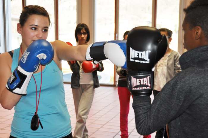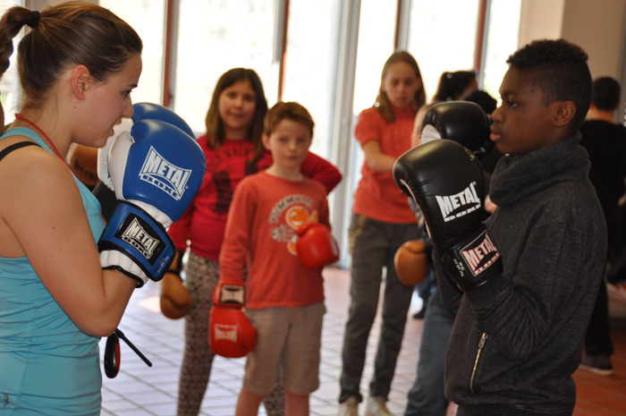 Avec la jeune femme il message est clair, pas de violence dans la boxe française, on peut se défouler, mais en faisant marcher sa tête.