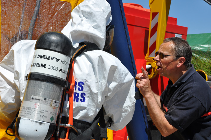 «Cet exercice permet de monter des opérations chez les industriels qui transportent et manipulent des matières dangereuses, des produits acides qui peuvent être toxiques pour les personnes, les biens et l’environnement»