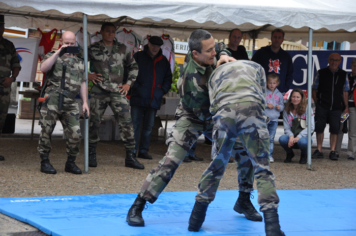 Sur la place du Casino le 4ème Régiment de Castelnaudary avait installé son barnum: démonstration de combat à main nue, orchestre du 4, VAB, stands… invitant les autochtones à échanger, découvrir cet univers et ce régiment d’élite.